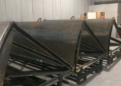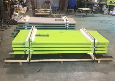 Flange panels for supporting new piping for mining in outback Australia. Delivered after being newly fabricated and nartchhave undercoated and surface coated