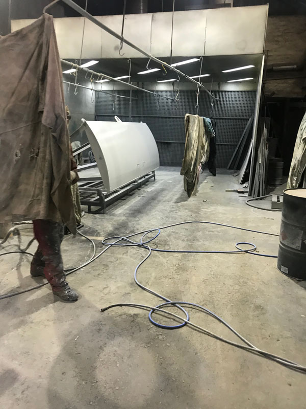 Showing the inside capacity gas storage sumps that have been abrasive blasted undercoated and then powder coated both on the inside and outside