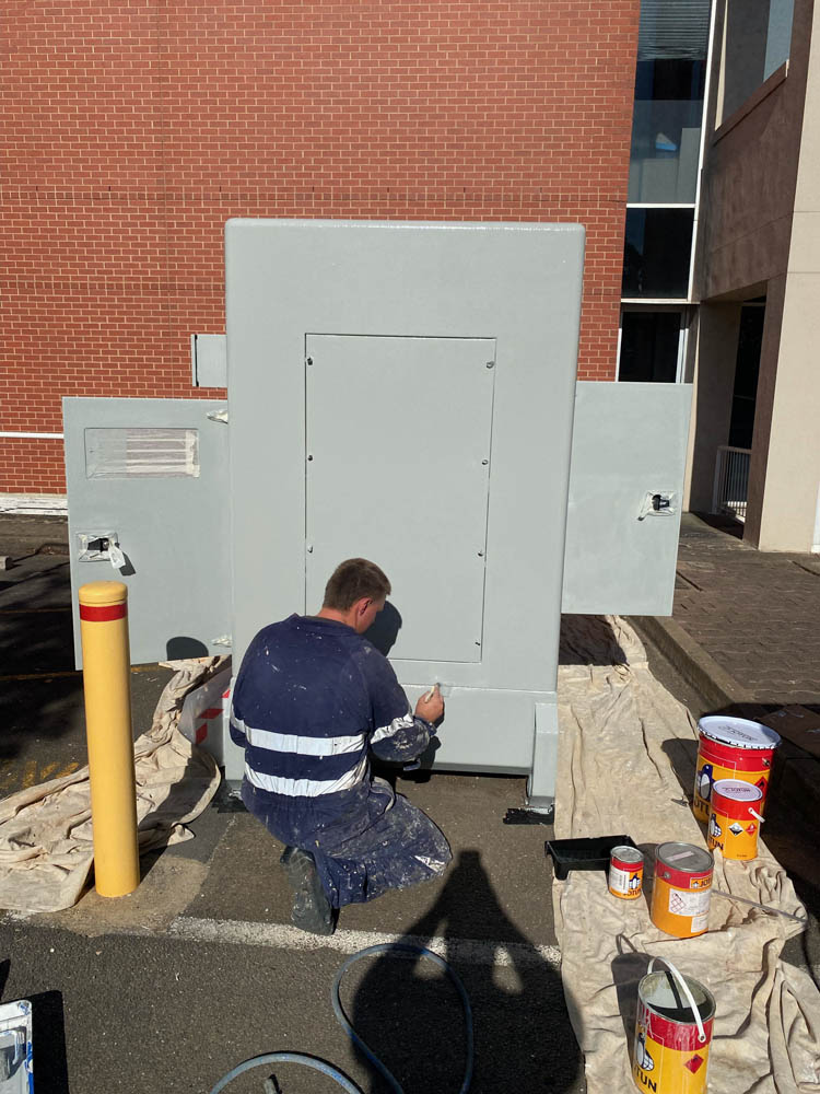panels that are part of generator boxesplant that have been restore via abrasive blasting and surface coating